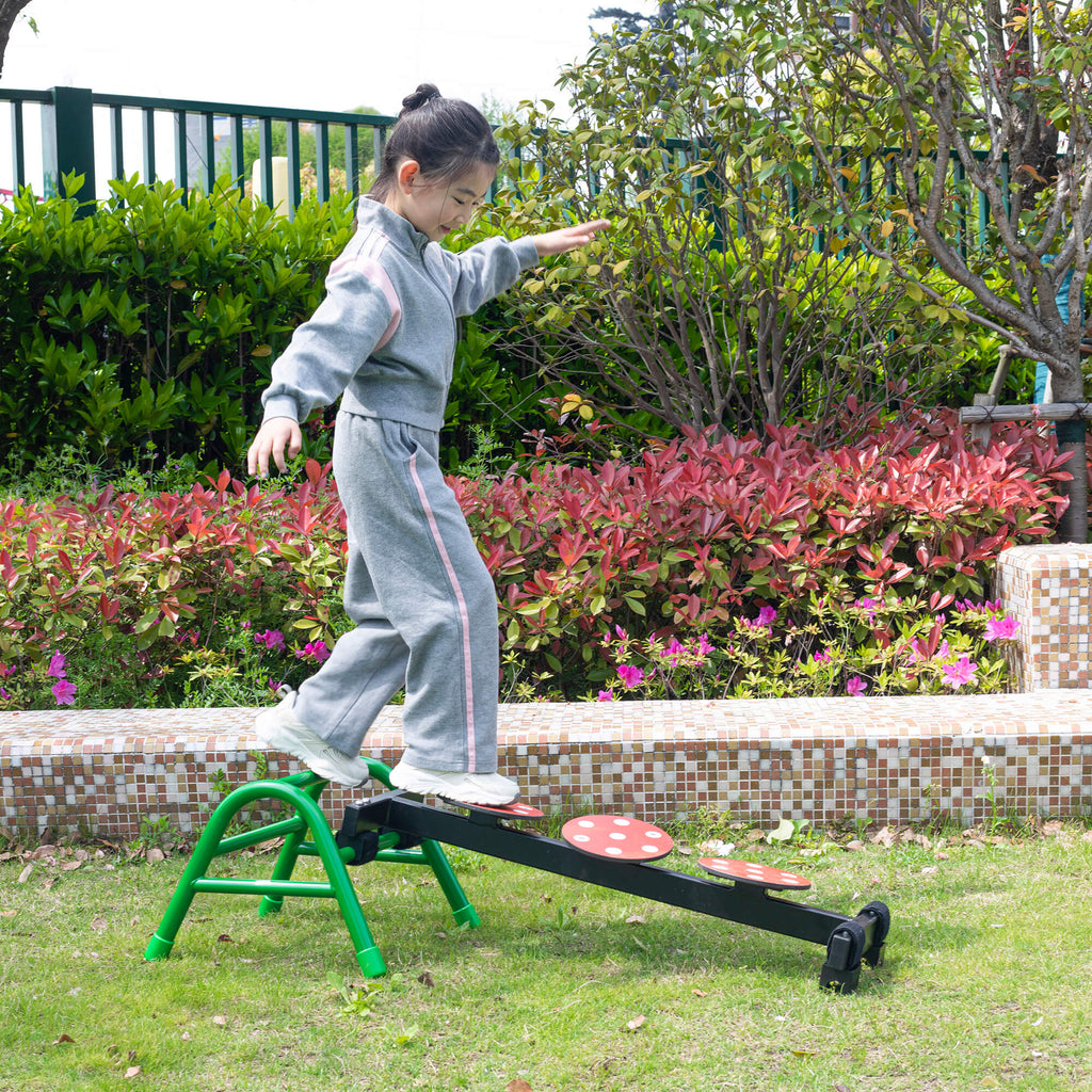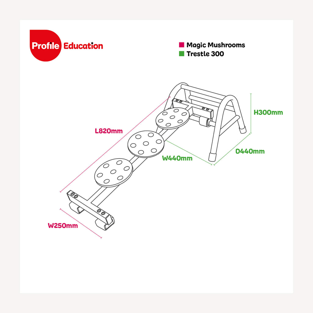 This set comprises a small trestle with the magical mushroom stepping stones. Hop, skip, and jump ? these magical mushroom stepping stones provide a true challenge for your little one and will help develop their gross motor skills and balance as they navigate